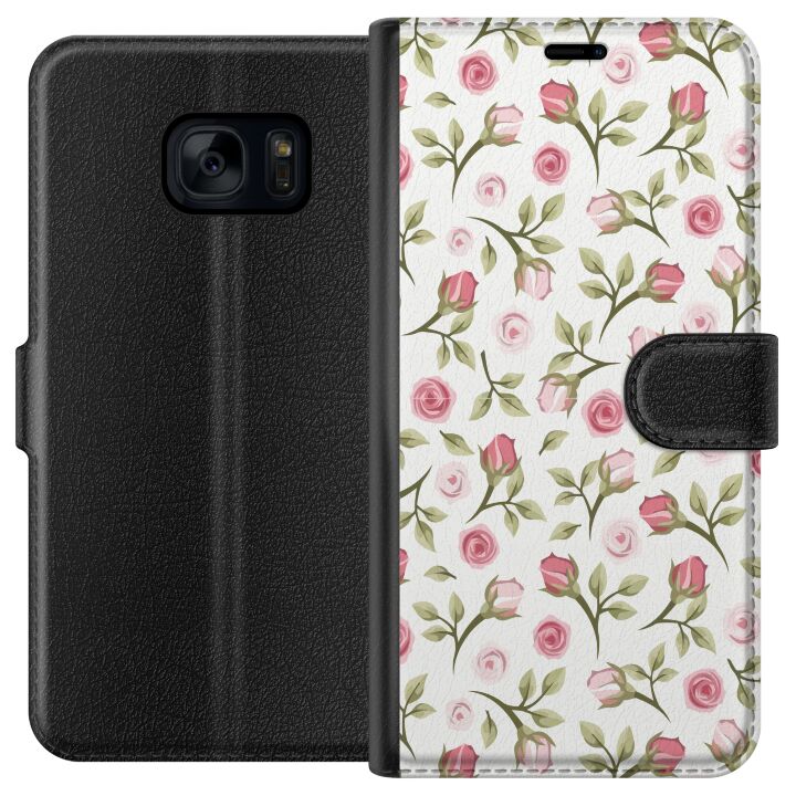 Plånboksfodral för Galaxy S7 med Blommigt -design. Fodralet kombinerar stil och funktion – ett slitstarkt mobilskal som skyddar mot repor och stötar samt praktiska kortfack på insidan.