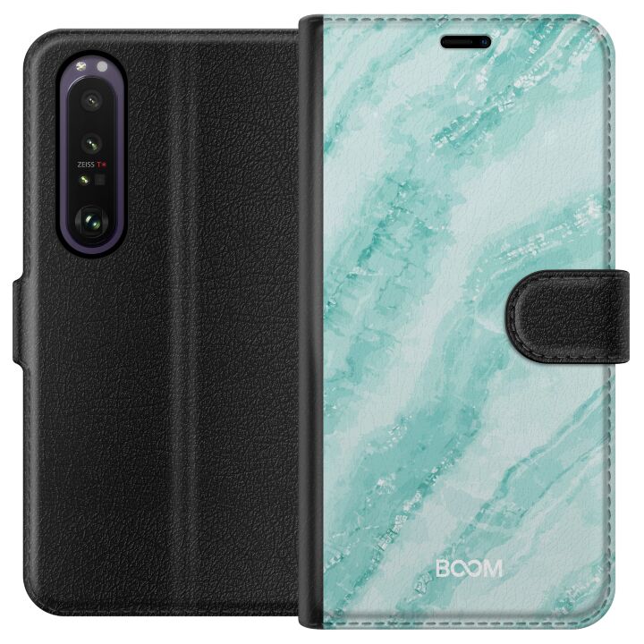 Plånboksfodral för Xperia 1 III med Mint Marble -design. Fodralet kombinerar stil och funktion – ett slitstarkt mobilskal som skyddar mot repor och stötar samt praktiska kortfack på insidan.