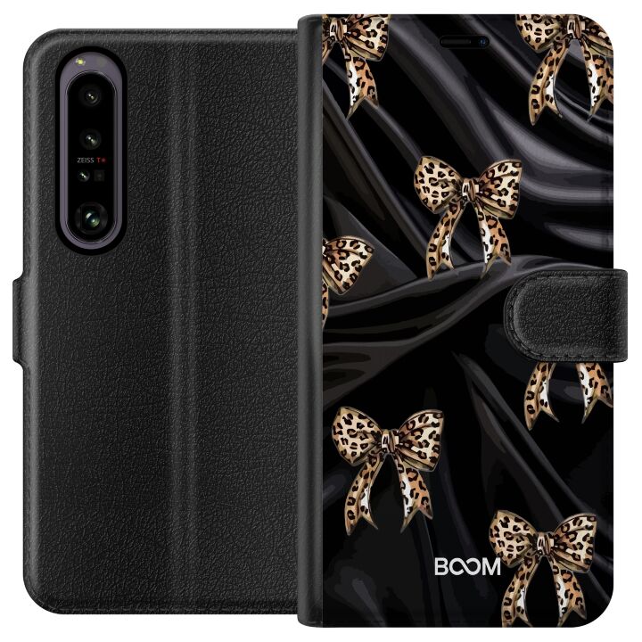 Plånboksfodral för Xperia 1 IV med Leopard Bow -design. Fodralet kombinerar stil och funktion – ett slitstarkt mobilskal som skyddar mot repor och stötar samt praktiska kortfack på insidan.