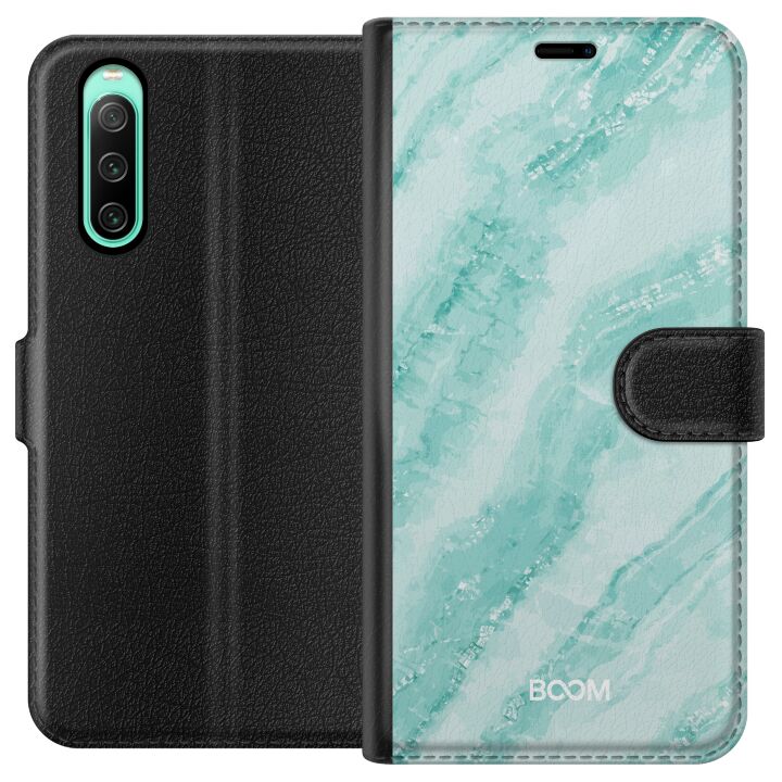 Plånboksfodral för Xperia 10 IV med Mint Marble -design. Fodralet kombinerar stil och funktion – ett slitstarkt mobilskal som skyddar mot repor och stötar samt praktiska kortfack på insidan.