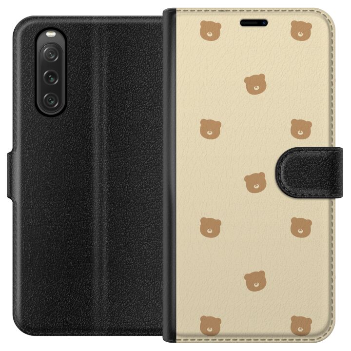 Plånboksfodral för Xperia 10 V med Björnmönster -design. Fodralet kombinerar stil och funktion – ett slitstarkt mobilskal som skyddar mot repor och stötar samt praktiska kortfack på insidan.