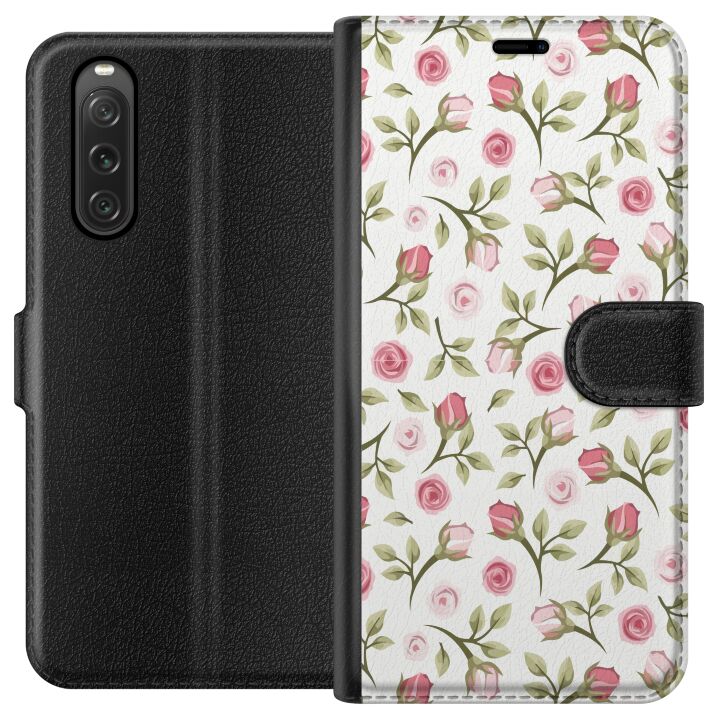 Plånboksfodral för Xperia 10 V med Blommigt -design. Fodralet kombinerar stil och funktion – ett slitstarkt mobilskal som skyddar mot repor och stötar samt praktiska kortfack på insidan.