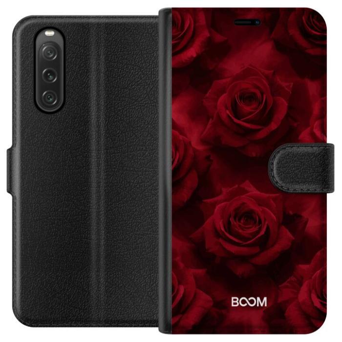 Plånboksfodral för Xperia 10 V med Crimson Rose -design. Fodralet kombinerar stil och funktion – ett slitstarkt mobilskal som skyddar mot repor och stötar samt praktiska kortfack på insidan.