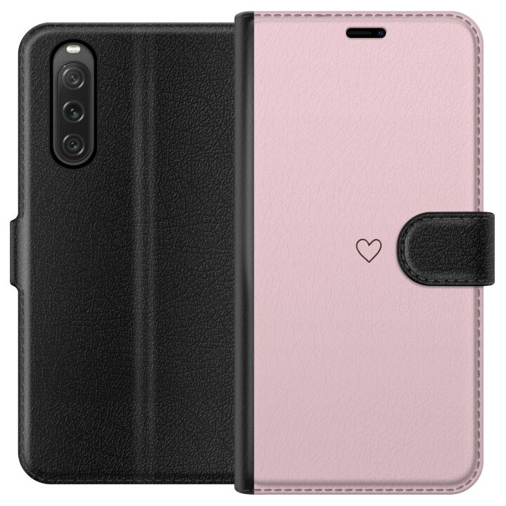 Plånboksfodral för Xperia 10 V med Litet Hjärta -design. Fodralet kombinerar stil och funktion – ett slitstarkt mobilskal som skyddar mot repor och stötar samt praktiska kortfack på insidan.