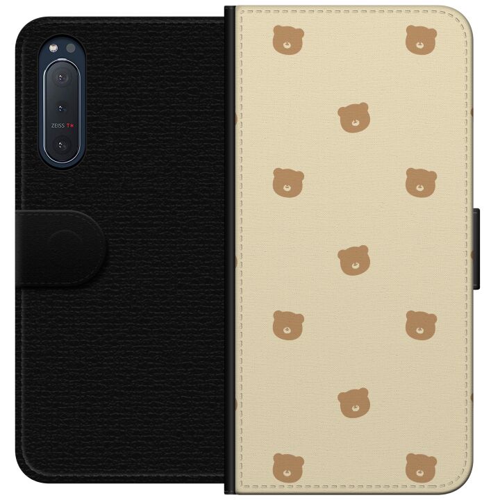 Plånboksfodral för Xperia 5 II med Björnmönster -design. Fodralet kombinerar stil och funktion – ett slitstarkt mobilskal som skyddar mot repor och stötar samt praktiska kortfack på insidan.