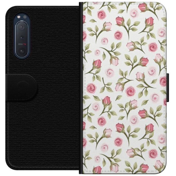Plånboksfodral för Xperia 5 II med Blommigt -design. Fodralet kombinerar stil och funktion – ett slitstarkt mobilskal som skyddar mot repor och stötar samt praktiska kortfack på insidan.