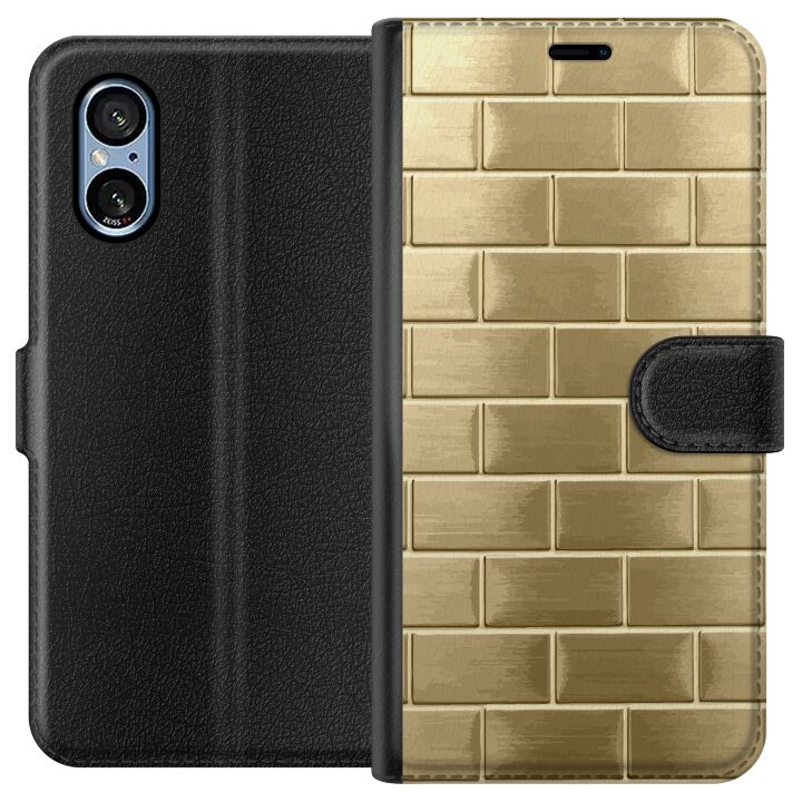 Plånboksfodral för Xperia 5 V med Gyllene Murstenar -design. Fodralet kombinerar stil och funktion – ett slitstarkt mobilskal som skyddar mot repor och stötar samt praktiska kortfack på insidan.