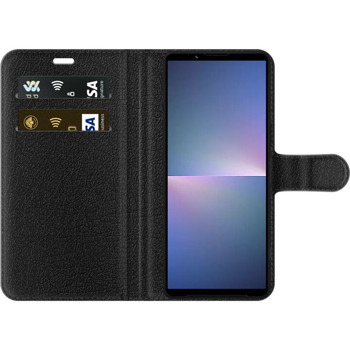 Plånboksfodral för Xperia 5 V med Midnight Stone -design. Fodralet kombinerar stil och funktion – ett slitstarkt mobilskal som skyddar mot repor och stötar samt praktiska kortfack på insidan.