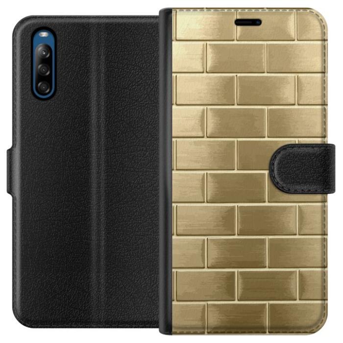 Plånboksfodral för Xperia L4 med Gyllene Murstenar -design. Fodralet kombinerar stil och funktion – ett slitstarkt mobilskal som skyddar mot repor och stötar samt praktiska kortfack på insidan.