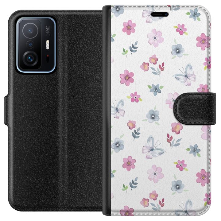 Plånboksfodral för 11T med Blommor och fjärillar -design. Fodralet kombinerar stil och funktion – ett slitstarkt mobilskal som skyddar mot repor och stötar samt praktiska kortfack på insidan.