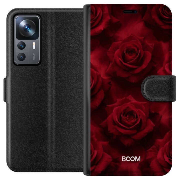 Plånboksfodral för 12T med Crimson Rose -design. Fodralet kombinerar stil och funktion – ett slitstarkt mobilskal som skyddar mot repor och stötar samt praktiska kortfack på insidan.