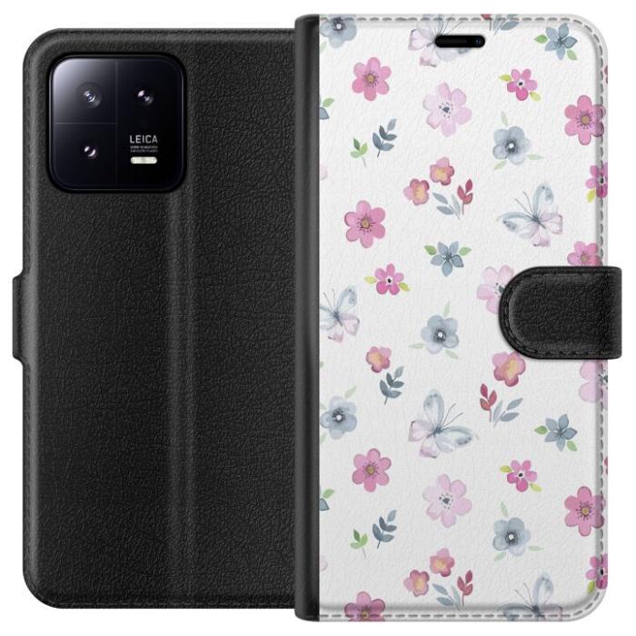 Plånboksfodral för 13 med Blommor och fjärillar -design. Fodralet kombinerar stil och funktion – ett slitstarkt mobilskal som skyddar mot repor och stötar samt praktiska kortfack på insidan.