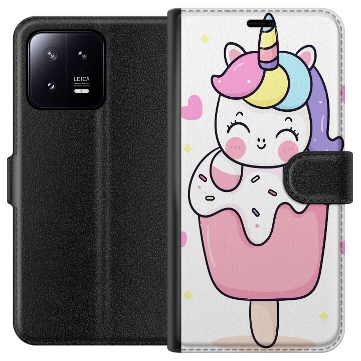 Plånboksfodral för 13 med Glad enhörning -design. Fodralet kombinerar stil och funktion – ett slitstarkt mobilskal som skyddar mot repor och stötar samt praktiska kortfack på insidan.