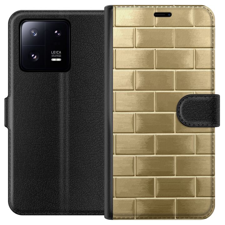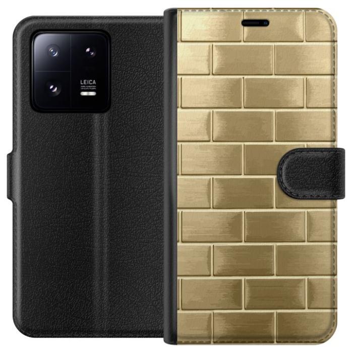 Plånboksfodral för 13 Pro med Gyllene Murstenar -design. Fodralet kombinerar stil och funktion – ett slitstarkt mobilskal som skyddar mot repor och stötar samt praktiska kortfack på insidan.