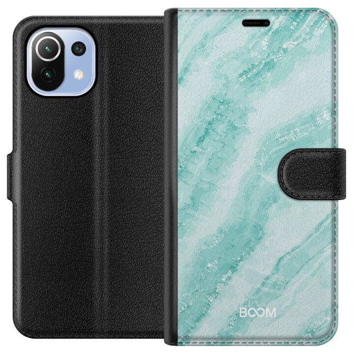 Plånboksfodral för Mi 11 Lite med Mint Marble -design. Fodralet kombinerar stil och funktion – ett slitstarkt mobilskal som skyddar mot repor och stötar samt praktiska kortfack på insidan.