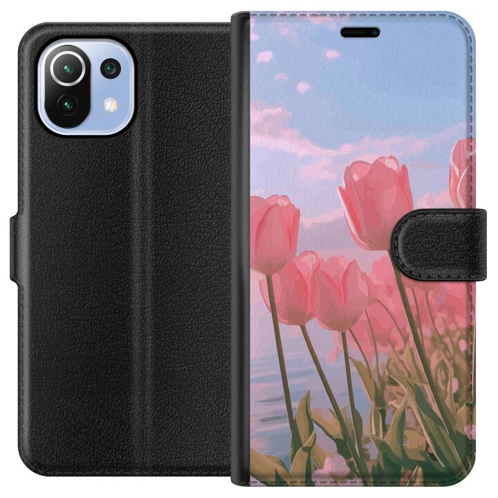 Plånboksfodral till Xiaomi Mi 11 Lite med Rosa Tulpaner