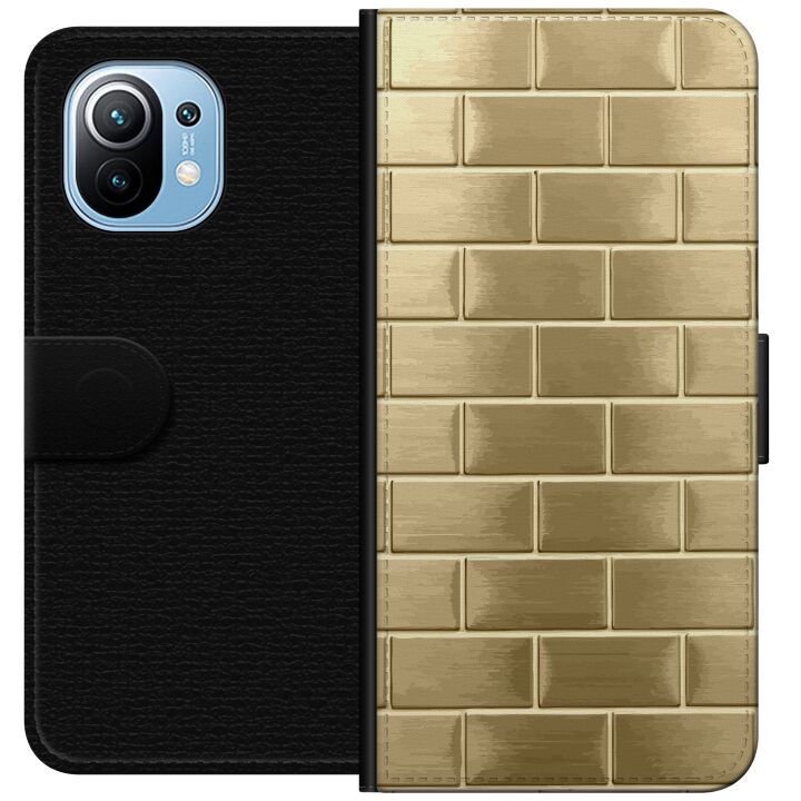 Plånboksfodral för Mi 11 med Gyllene Murstenar -design. Fodralet kombinerar stil och funktion – ett slitstarkt mobilskal som skyddar mot repor och stötar samt praktiska kortfack på insidan.