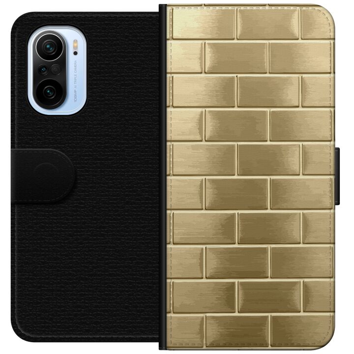 Plånboksfodral för Mi 11i med Gyllene Murstenar -design. Fodralet kombinerar stil och funktion – ett slitstarkt mobilskal som skyddar mot repor och stötar samt praktiska kortfack på insidan.