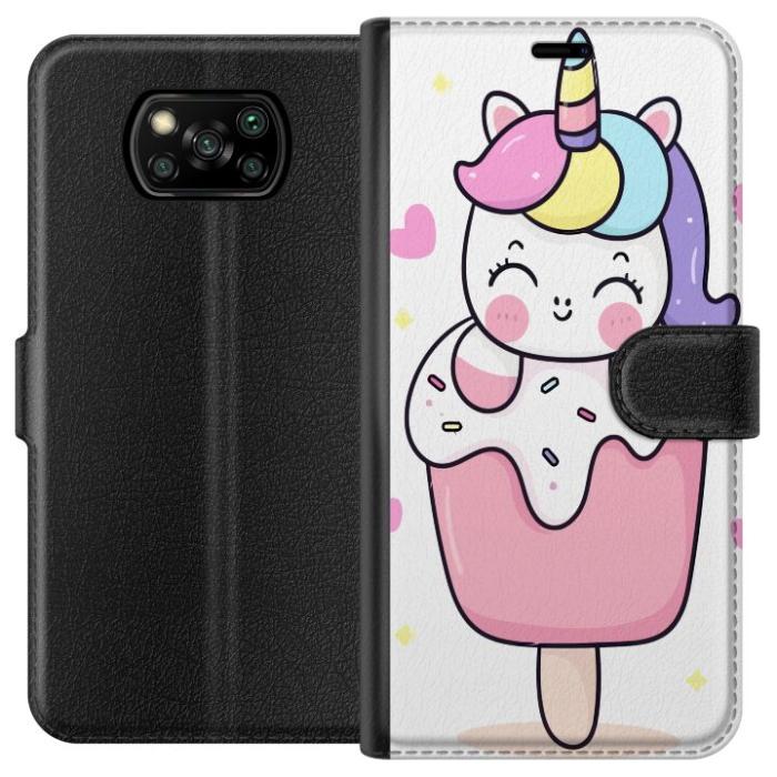 Plånboksfodral för Poco X3 NFC med Glad enhörning -design. Fodralet kombinerar stil och funktion – ett slitstarkt mobilskal som skyddar mot repor och stötar samt praktiska kortfack på insidan.