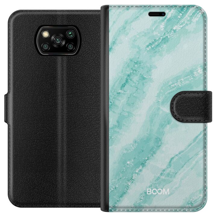 Plånboksfodral för Poco X3 NFC med Mint Marble -design. Fodralet kombinerar stil och funktion – ett slitstarkt mobilskal som skyddar mot repor och stötar samt praktiska kortfack på insidan.