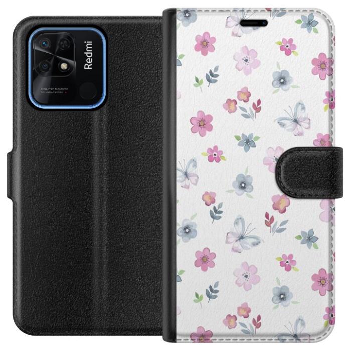 Plånboksfodral för Redmi 10C med Blommor och fjärillar -design. Fodralet kombinerar stil och funktion – ett slitstarkt mobilskal som skyddar mot repor och stötar samt praktiska kortfack på insidan.
