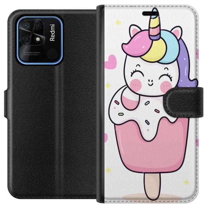 Plånboksfodral för Redmi 10C med Glad enhörning -design. Fodralet kombinerar stil och funktion – ett slitstarkt mobilskal som skyddar mot repor och stötar samt praktiska kortfack på insidan.