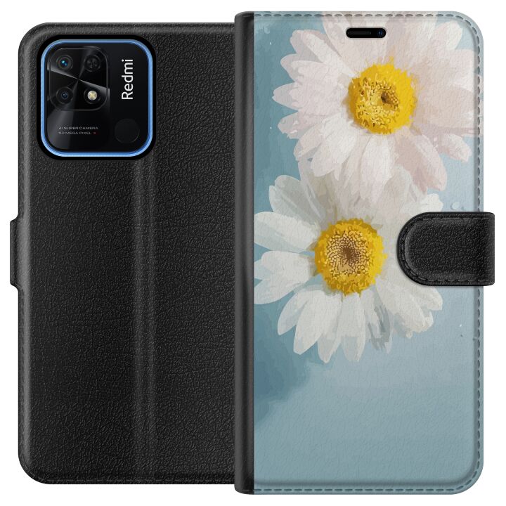 Plånboksfodral för Redmi 10C med Sommarblommor -design. Fodralet kombinerar stil och funktion – ett slitstarkt mobilskal som skyddar mot repor och stötar samt praktiska kortfack på insidan.