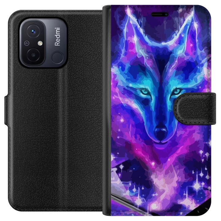 Plånboksfodral för Redmi 12C med Neon Varg -design. Fodralet kombinerar stil och funktion – ett slitstarkt mobilskal som skyddar mot repor och stötar samt praktiska kortfack på insidan.