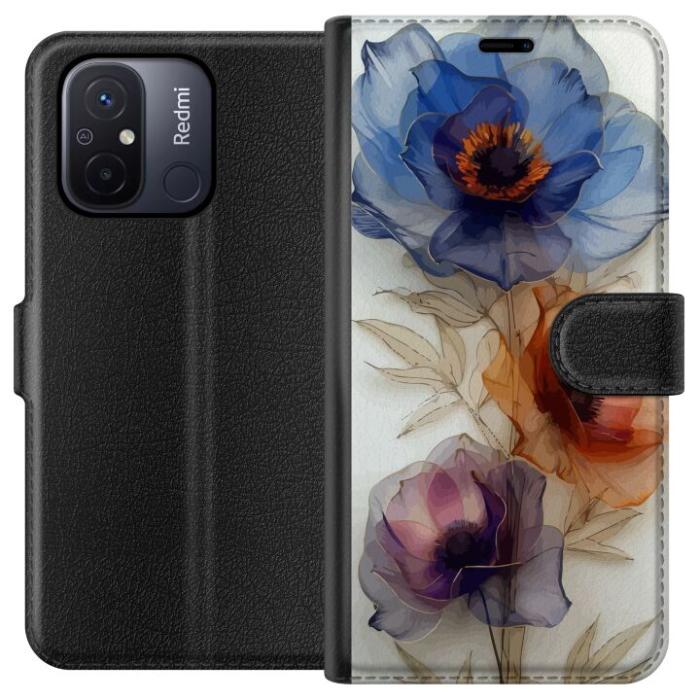 Plånboksfodral för Redmi 12C med Silkesblommor -design. Fodralet kombinerar stil och funktion – ett slitstarkt mobilskal som skyddar mot repor och stötar samt praktiska kortfack på insidan.
