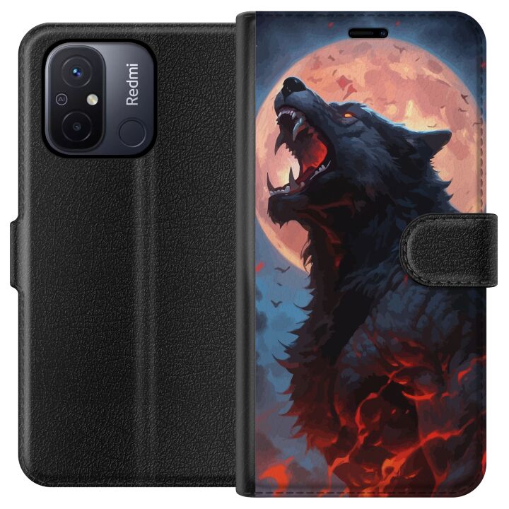 Plånboksfodral för Redmi 12C med Ylande varg -design. Fodralet kombinerar stil och funktion – ett slitstarkt mobilskal som skyddar mot repor och stötar samt praktiska kortfack på insidan.