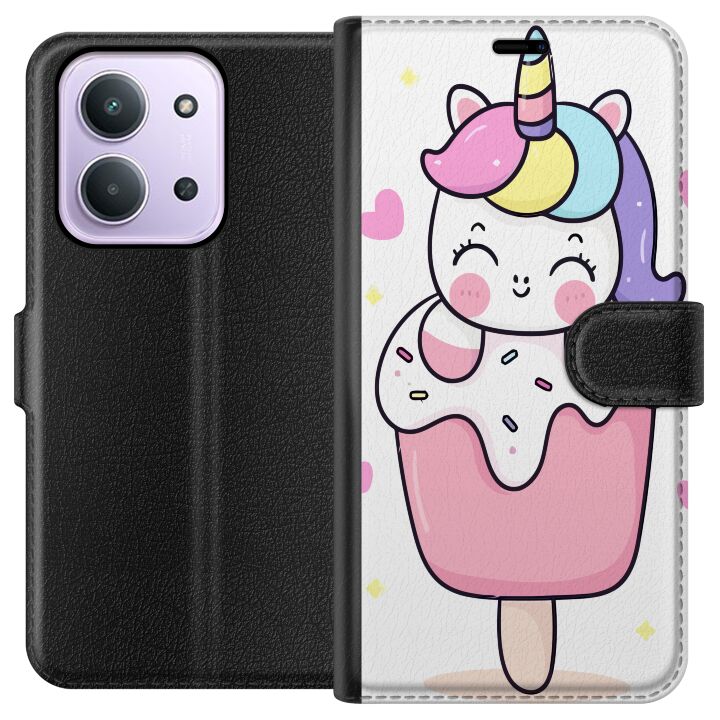Plånboksfodral för Redmi 15C med Glad enhörning -design. Fodralet kombinerar stil och funktion – ett slitstarkt mobilskal som skyddar mot repor och stötar samt praktiska kortfack på insidan.