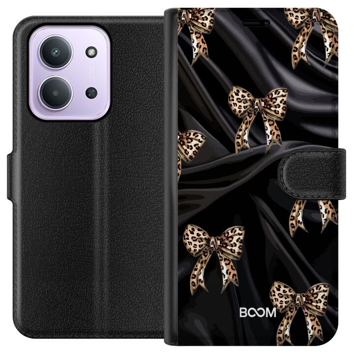 Plånboksfodral för Redmi 15C med Leopard Bow -design. Fodralet kombinerar stil och funktion – ett slitstarkt mobilskal som skyddar mot repor och stötar samt praktiska kortfack på insidan.