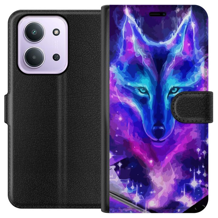 Plånboksfodral för Redmi 15C med Neon Varg -design. Fodralet kombinerar stil och funktion – ett slitstarkt mobilskal som skyddar mot repor och stötar samt praktiska kortfack på insidan.