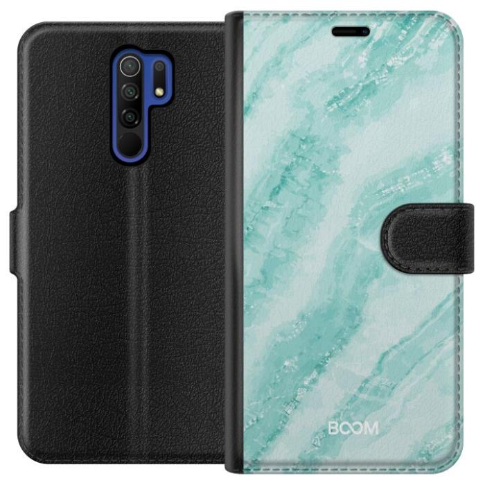 Plånboksfodral för Redmi 9 med Mint Marble -design. Fodralet kombinerar stil och funktion – ett slitstarkt mobilskal som skyddar mot repor och stötar samt praktiska kortfack på insidan.