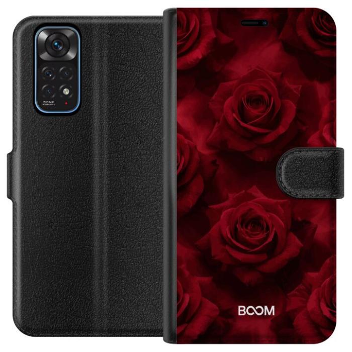 Plånboksfodral för Redmi Note 11 med Crimson Rose -design. Fodralet kombinerar stil och funktion – ett slitstarkt mobilskal som skyddar mot repor och stötar samt praktiska kortfack på insidan.