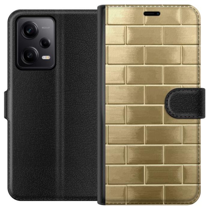Plånboksfodral för Redmi Note 12 Pro med Gyllene Murstenar -design. Fodralet kombinerar stil och funktion – ett slitstarkt mobilskal som skyddar mot repor och stötar samt praktiska kortfack på insidan.