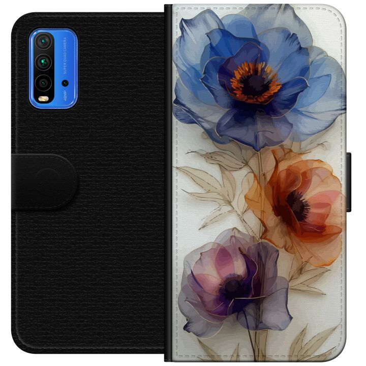 Plånboksfodral för Redmi Note 9 4G med Silkesblommor -design. Fodralet kombinerar stil och funktion – ett slitstarkt mobilskal som skyddar mot repor och stötar samt praktiska kortfack på insidan.