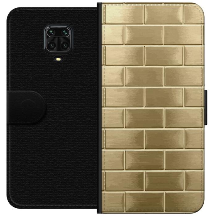 Plånboksfodral för Redmi Note 9S med Gyllene Murstenar -design. Fodralet kombinerar stil och funktion – ett slitstarkt mobilskal som skyddar mot repor och stötar samt praktiska kortfack på insidan.
