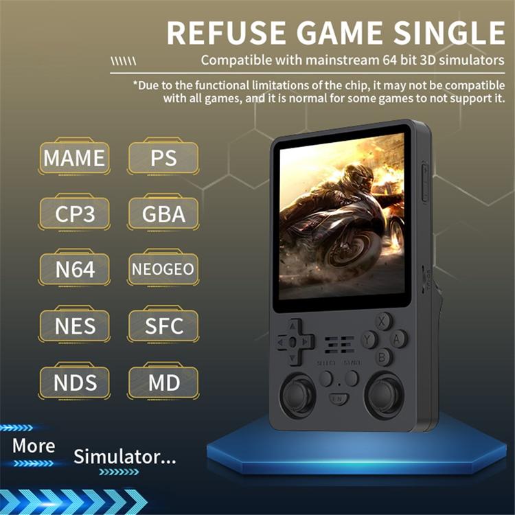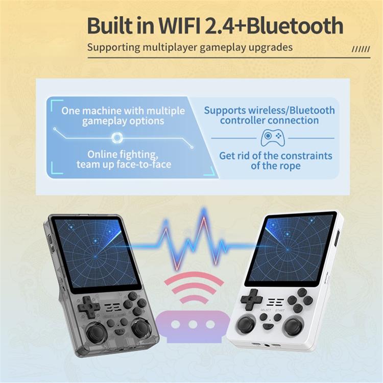 Med stöd för över 30 olika emulatorer kan du spela tusentals spel från flera generationer. Konsolen är utrustad med WiFi, Bluetooth och HD-utgång, vilket gör det möjligt att spela tillsammans med andra eller överföra spelet direkt till TV:n. Det öppna JELOS-systemet ger snabb prestanda och anpassningsmöjligheter, medan det kraftfulla 5000mAh-batteriet ser till att du kan spela i upp till 10 timmar utan avbrott.