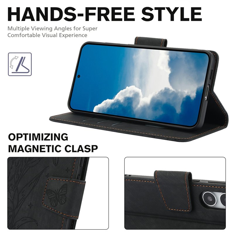 - Elegant design - Tillverkat av högkvalitativt PU-läder och TPU med blommor och fjärilar, vilket ger en stilfull look och ökad hållbarhet.