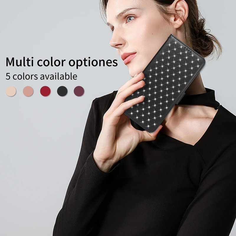 Skydda din Samsung Galaxy S26 Plus med denna eleganta läderfodral. Med en gnistrande rhombusdesign och praktiska funktioner erbjuder detta fodral både stil och säkerhet. Det är den perfekta lösningen för att hålla din telefon och dina värdesaker organiserade och skyddade.