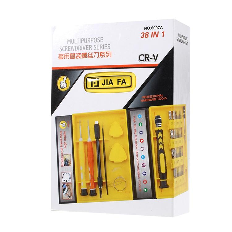38 delar inklusive skruvmejsel, förlängningsstav, pincett, öppningsverktyg, mini-sugpropp och nål.