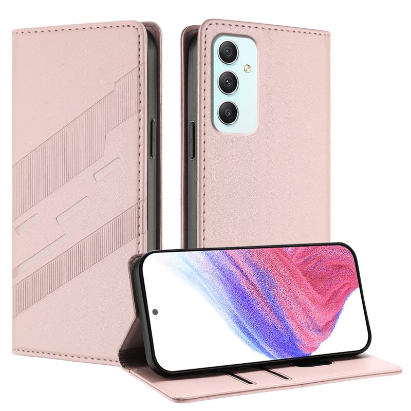 Skydda din Samsung Galaxy A35 5G med detta punkstil imiterade läderfodral. Fodralet kombinerar stil och funktionalitet. Det erbjuder både ett elegant utseende och praktiska funktioner. Perfekt för den moderna användaren som vill ha både skydd och stil.