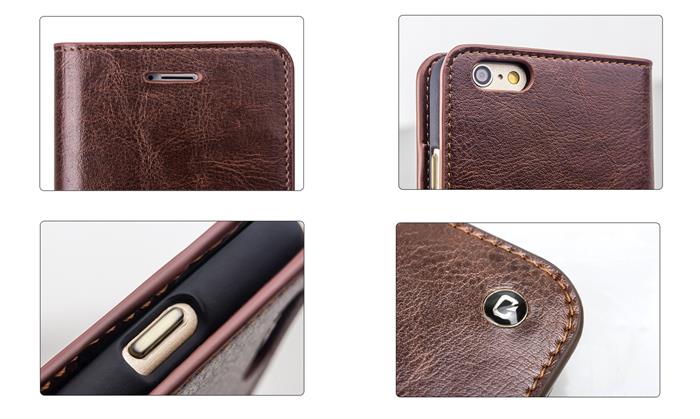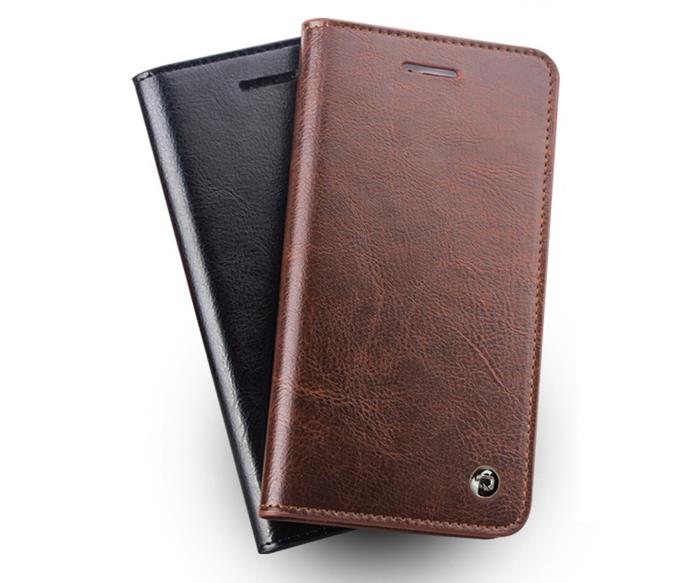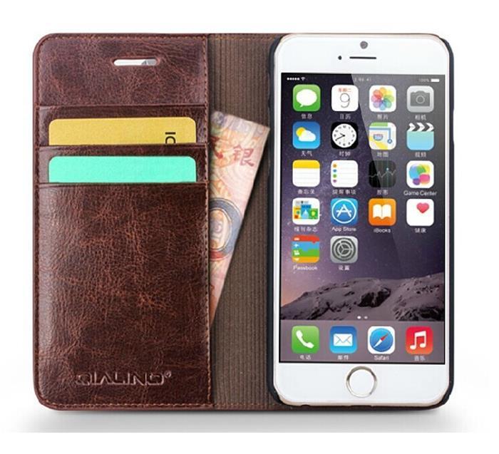 Qialino Äkta läder Plånboksfodral till Apple iPhone 6 / 6S - Svart
