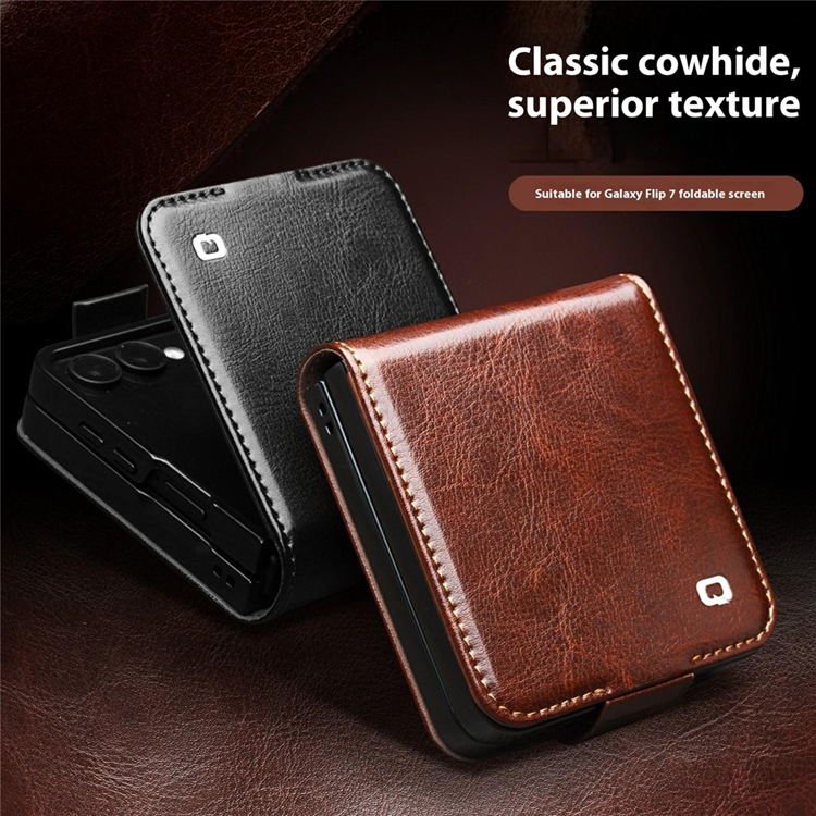 QIALINO Galaxy Z Flip 7 5G Plånboksfodral Äkta Läder - Svart