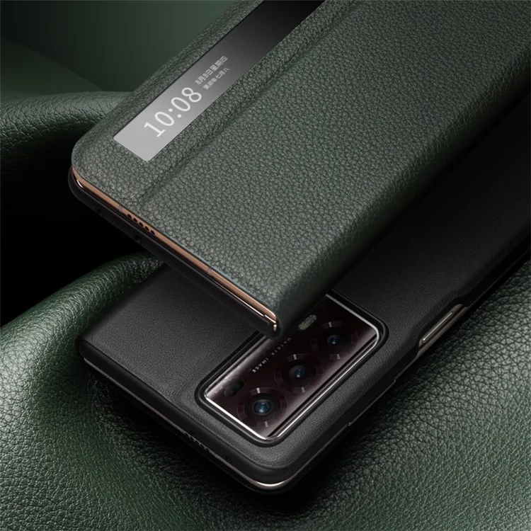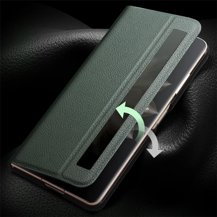 QIALINO Honor Magic V2 Flipfodral View Window Äkta läder Nappa Texture - Grön
