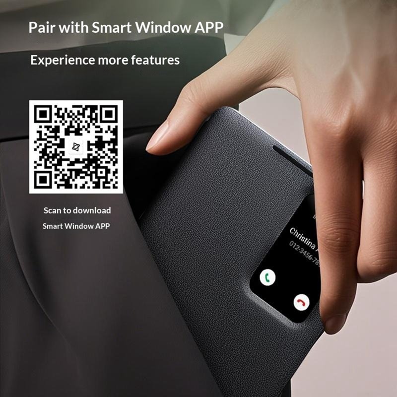 - Visningsfönster gör det enkelt att kontrollera tid, datum och batterinivå utan att öppna fodralet
