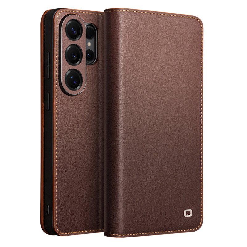 Qialino Plånboksfodral för Samsung Galaxy S26 Ultra Äkta läder - Brun
