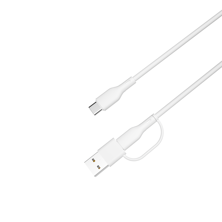QUALO 2in1 USB-C till USB-C/USB-A Kabel 1.5m 3A Recycling QRC CC+A-00 - Vit