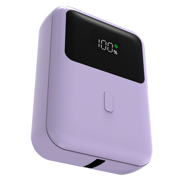 Den stilrena lila designen gör powerbanken till ett elegant tillbehör som passar både i handen och i väskan. Trots sin kraftfulla prestanda är den lätt och smidig, perfekt att ta med överallt – från jobbresor till vardagspendling. Två portar, USB-C och USB-A, gör att du kan ladda två enheter samtidigt utan att kompromissa med hastighet eller säkerhet.